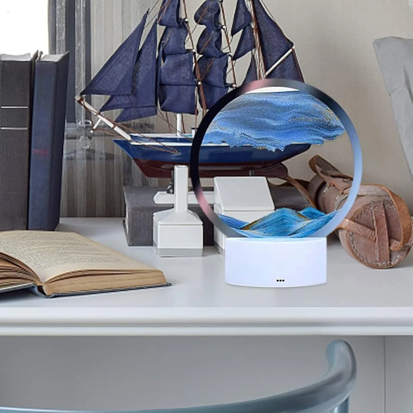 - 【PRODUCT FETURES】:Relaxing 3D Color Sand Art. At night, you turn off all the lights and turn on the sand art switch, looking at the falling sand and the changing different landscape scenes, you will feel particularly calm and relaxed!