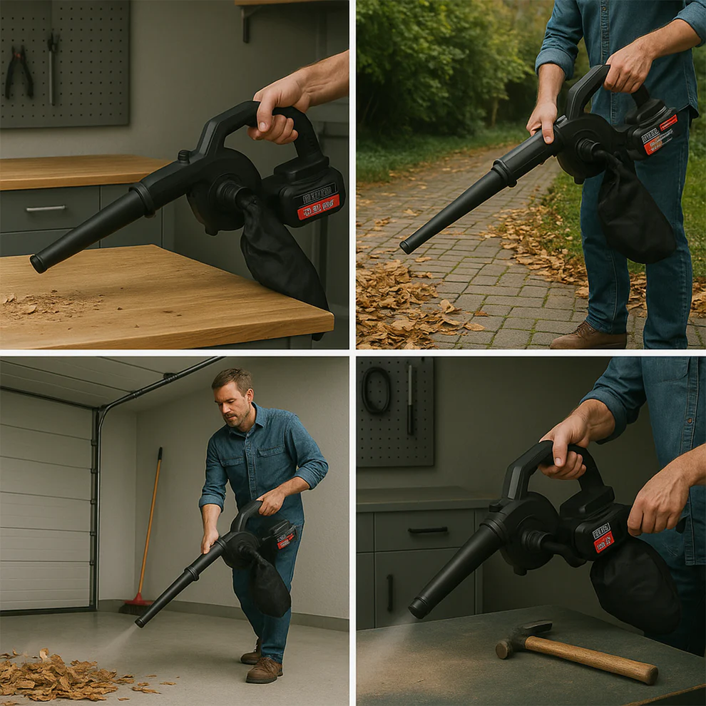 - The Air Blower seamlessly combines dual functionality, effective dust collection, and a comfortable design. Elevate your cleaning experience with this all-in-one tool that caters to your every need.