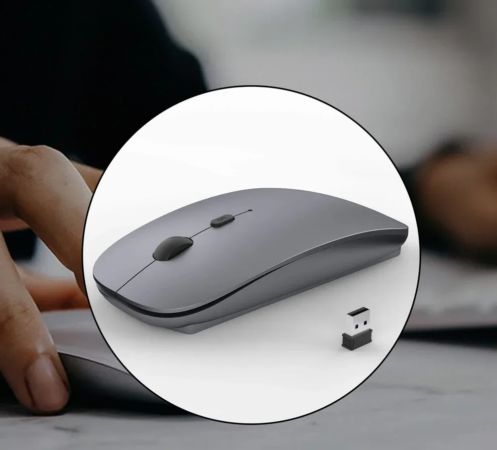 The Ultra-Thin wireless mouse size is only 4.3×2.5×1.1In.